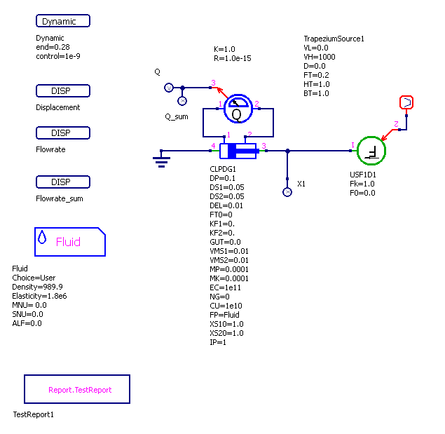Тест: Проверка значения объемного расхода при действии силы, возрастающей с 0Н до 1000Н, действующей на механический порт