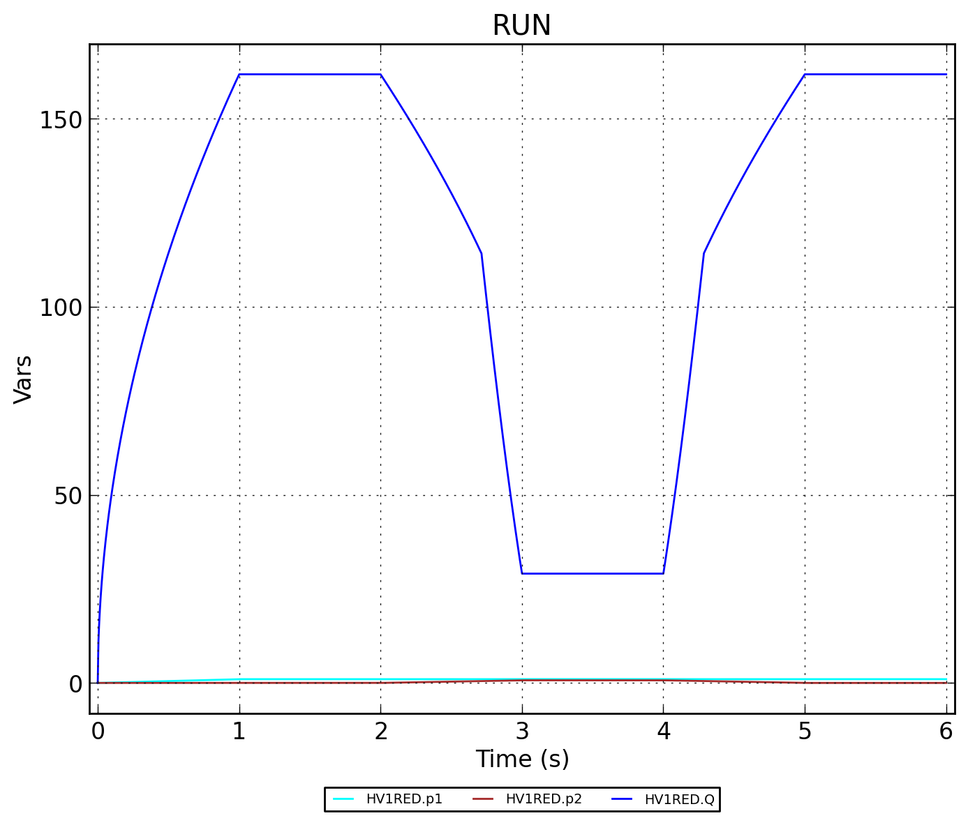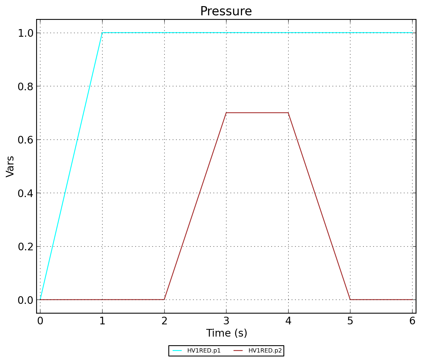 Изменение режима работы клапана вызвано управляющим сигналом трапецевидной формы.