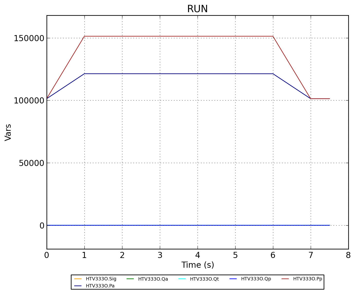 Изменение режима работы клапана вызвано управляющим сигналом трапецевидной формы.