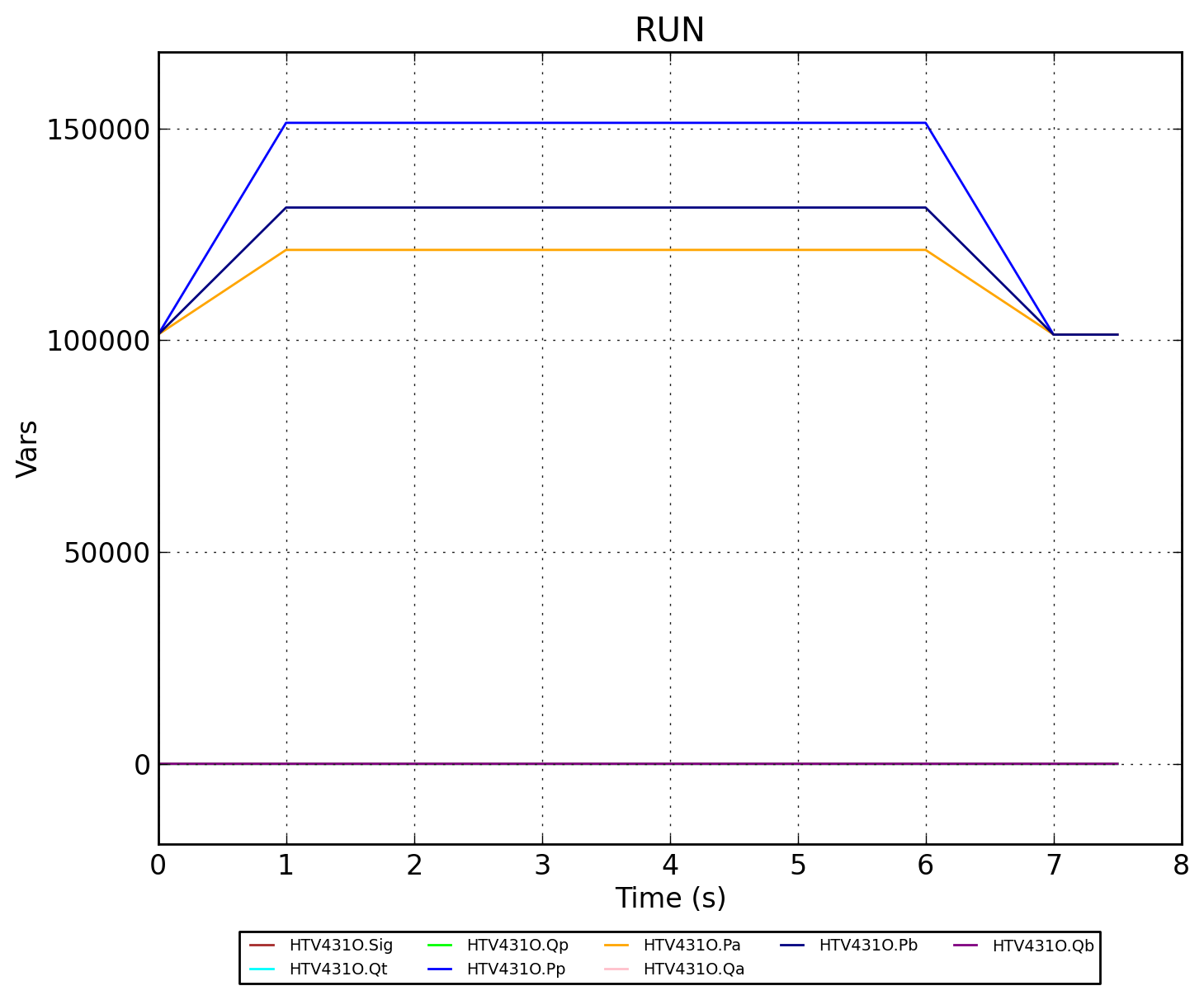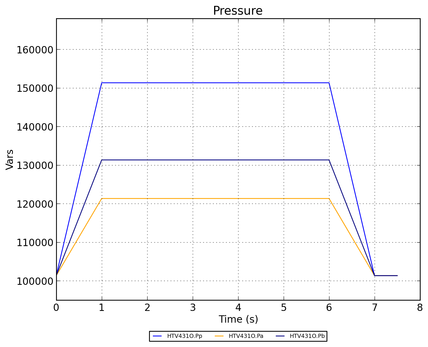 Изменение режима работы клапана вызвано управляющим сигналом трапецевидной формы.