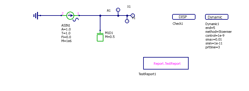 Модель элемента с источником разности ускорений (синусоидальное воздействие)