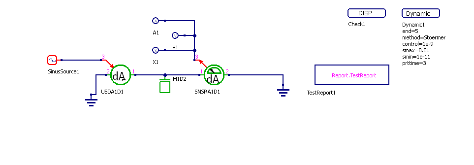 Модель элемента с управляемым источником ускорения и датчиком относительного ускорения