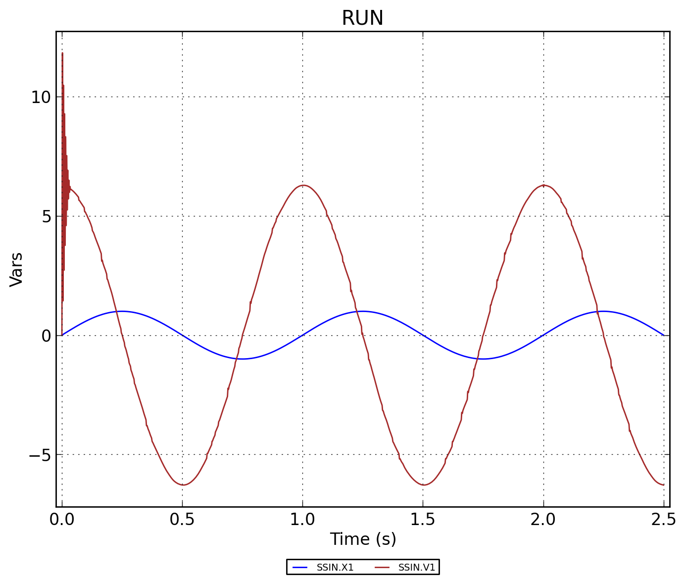 Модель элемента с источником разности перемещений (синусоидальное воздействие)