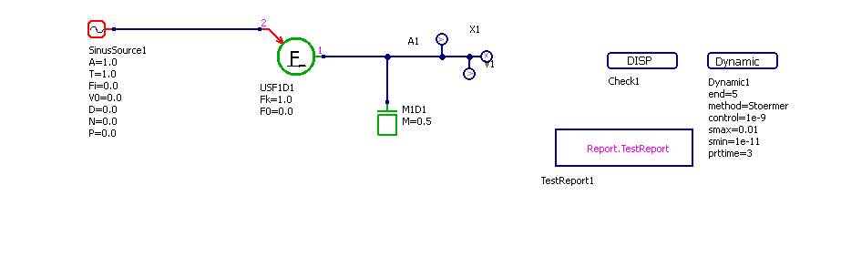 Модель элемента с управляемым однополюсным источником силы предназначена для анализа поведения
