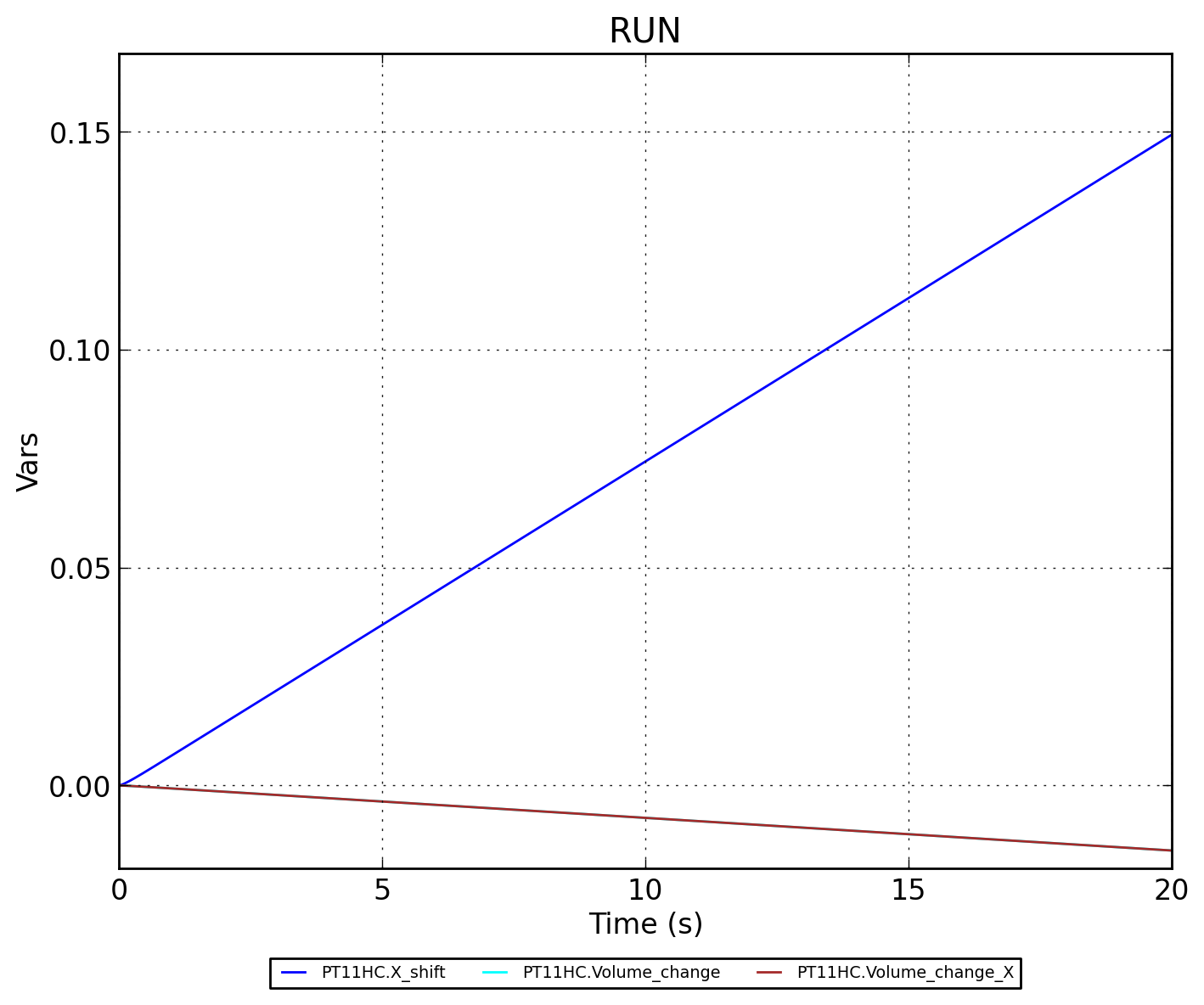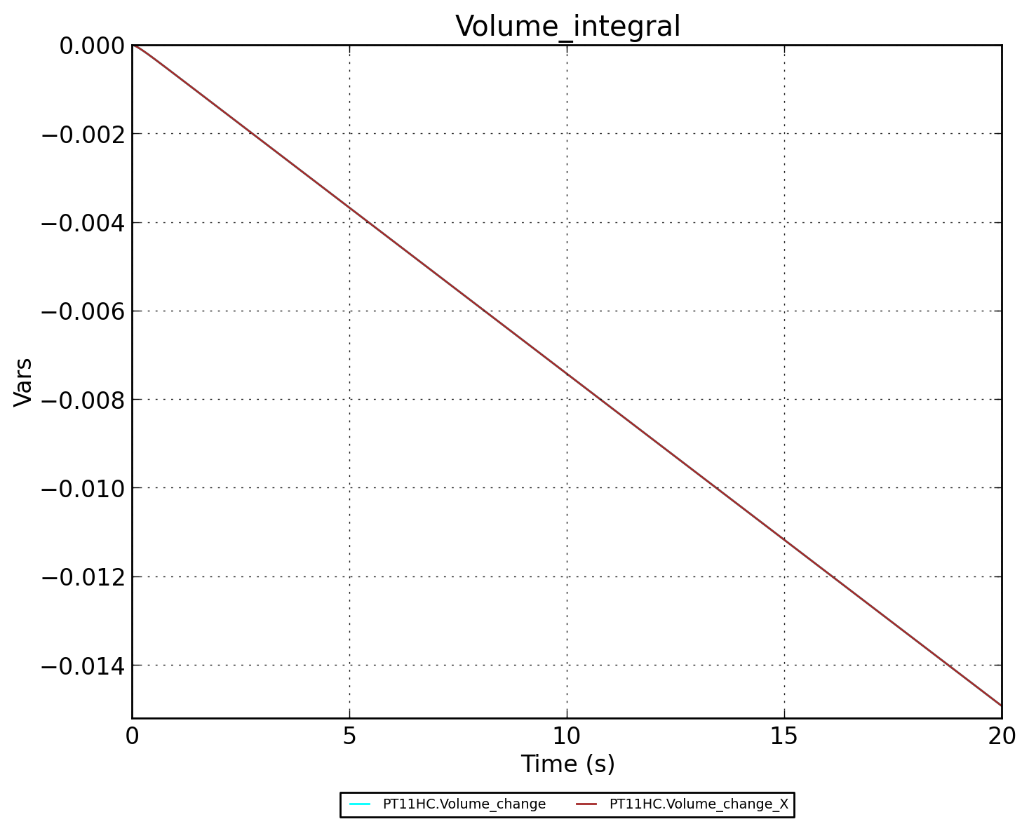 поршень сместился на 0.15 м, изменение объема 0.015 м3 совпадает с интегралом по времени