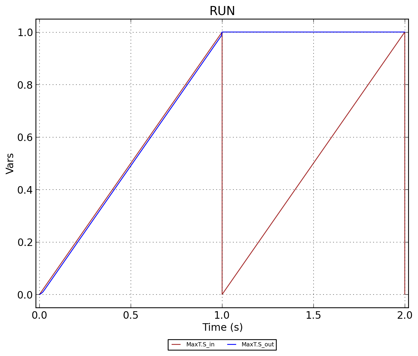 Цикл из возрастающих сигналов до значения равным единице. Компонент MaxT сохраняет последнее максимальное значение.