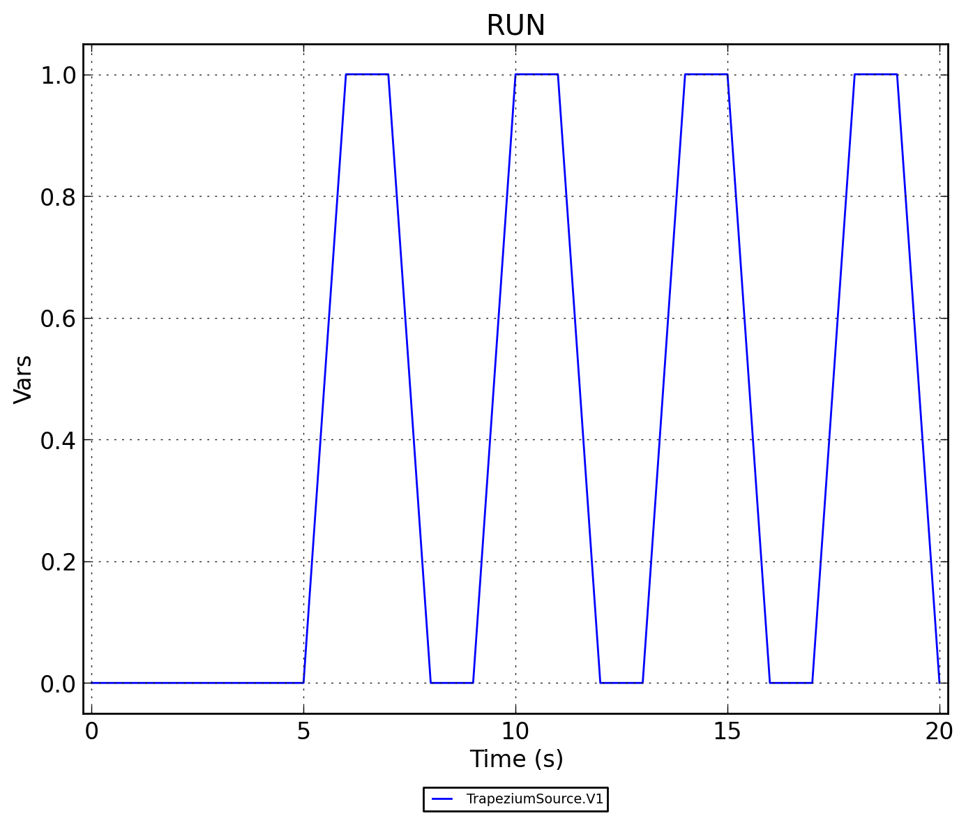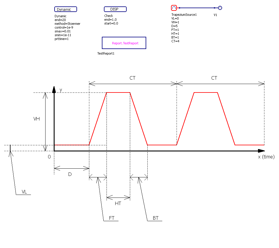 Пример применения Источника сигнала трапециевидной формы, циклический (TrapeziumSource)