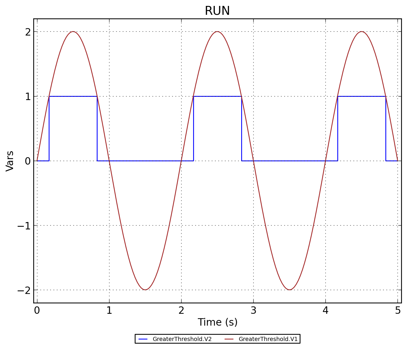 Модель сравнения (синусоидального) сигнала с порогом