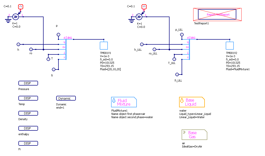 коде жидкости ([20, 10, 20] при fi_{m0} = 0.0 - вода) и с использованием элемента FluidMixture