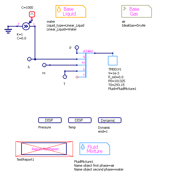Fluid=FluidMixture1, смесь - Имя объекта свойств среды, -