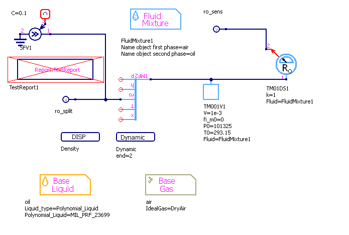 Fluid=FluidMixture1, смесь - Имя объекта свойств среды, -