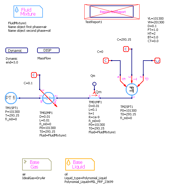 Fluid=FluidMixture1, смесь - Имя объекта свойств среды, -