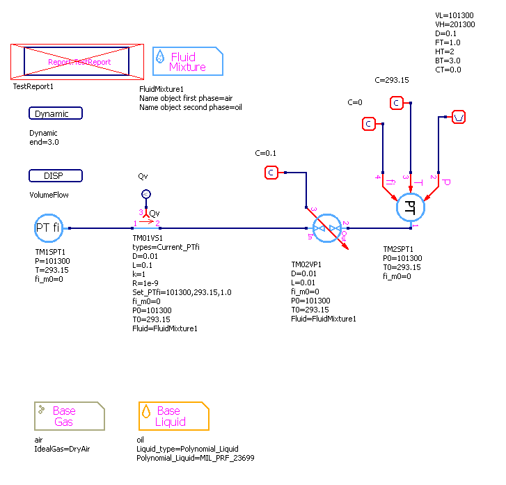 Fluid=FluidMixture1, смесь - Имя объекта свойств среды, -