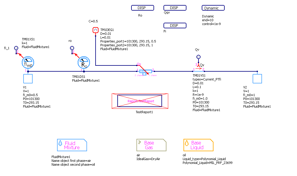 Fluid=FluidMixture1, смесь - Имя объекта свойств среды, -