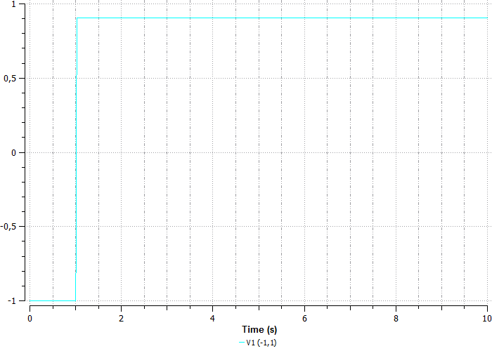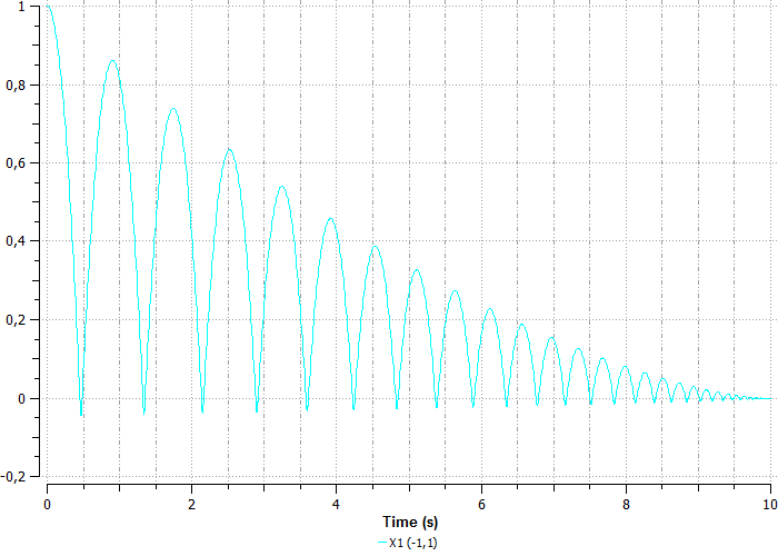 На графике видно, что скорость не доходит до единицы, так как автоматически задана точность интегрирования первого порядка. Для получения более точных результатов изменим метод интегрирования в свойствах компонента Dynamic1 (рисунок 26). Поставим вместо Stoermer метод Newmark (точность интегрирования второго порядка), и сохраним файл под названием ball1D_1.sch.