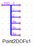 Сплиттер Point2DOFs (рисунок 8) разделяет трехмерный узел типа Point на 6 отдельных степеней свободы – 3 поступательных (X, Y, Z) и 3 вращательных (Rx, Ry, Rz) (ВАЖНО! Rx, Ry, Rz не соответствуют углам вокруг осей X, Y, Z. Для работы с 3D углами смотрите раздел «Кратко об угловых степенях свободы, используемых в пространственных элементах PRADIS»).