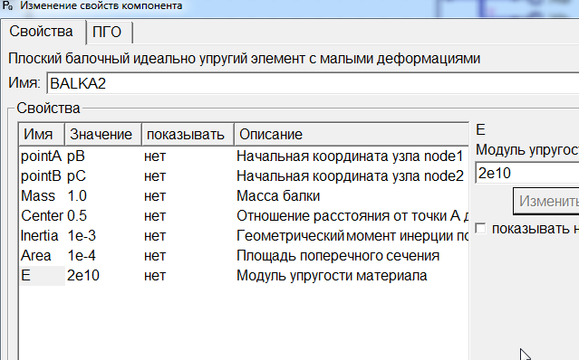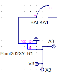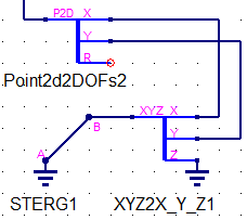 Модель BALKA (рисунок 15) является двумерным элементом, а модель стержня STERG трехмерным элементом. Соединение степени свободы X и степени свободы Y сплиттеров Point2d2DOFs и XYZ2X_Y_Z показывает, что стержень движется строго в плоскости XY, а координата Z у него всегда равна нулю, что показывает степень свободы Z сплиттера XYZ2X_Y_Z.