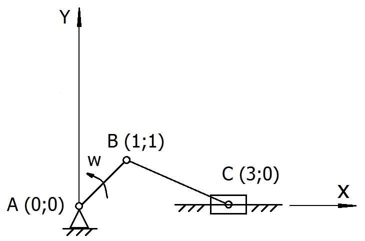 Попробуем изменить координаты ползуна, т.е. задать координаты точки C(1,5;0) (рисунок 20). Очевидно, что изменится длина шатуна. Сохраним под названием crank_2.sch.