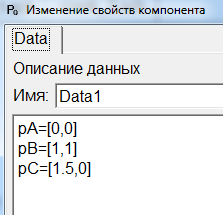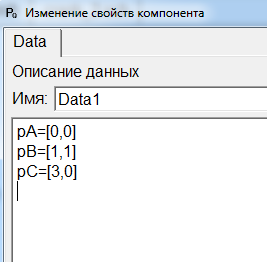 В блоке Data1 заданы координаты точек: A(0;0), B(1;1), C(3;0) (рисунок 18)